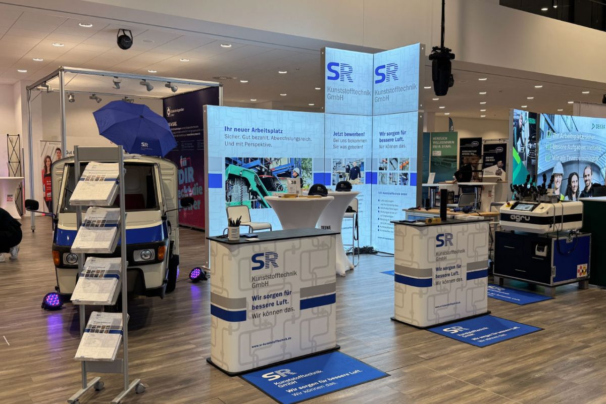 Ende September 2025 war es endlich so weit: Zum ersten Mal durften wir die S.R. Kunststofftechnik GmbH auf der Jobmesse in Erfurt präsentieren! Es war eine großartige Gelegenheit, talentierte Fachkräfte kennenzulernen und unser Unternehmen vorzustellen.